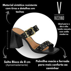 Em até 3x de R$ 33,33 sem juros À vistaR$ 79,99no PixTamanco Salto Grosso Vizzano com Tachas 6464126