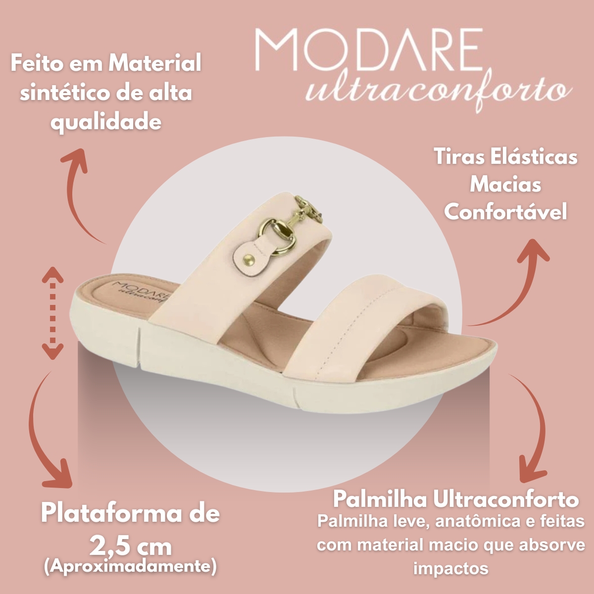 Tamanco Modare Ultraconforto 7199101 foi desenvolvido para mulheres que desejam unir estilo, praticidade e bem-estar no dia a dia. Confeccionado em material sintético macio e flexível, ele traz tiras confortáveis com elegante detalhe dourado no cabedal, agregando sofisticação ao visual casual.