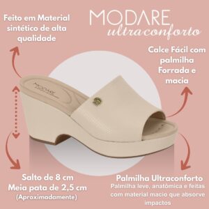 O solado em borracha antiderrapante, com aproximadamente 4,5 cm de altura, garante estabilidade, segurança e leveza ao caminhar, tornando o calçado ideal para uso diário. Versátil e confortável, o Tamanco Flat Modare combina facilmente com looks casuais e modernos, sendo uma escolha certeira para dias mais quentes e produções práticas.