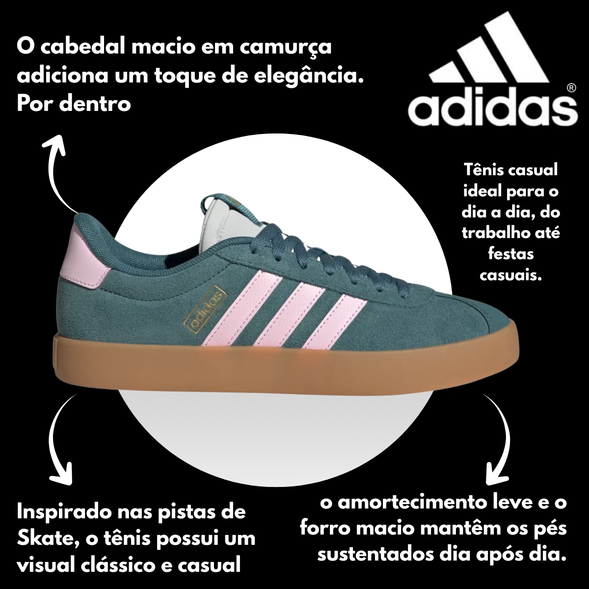 Ideal para o dia a dia, passeios e também para quem busca um visual esportivo com toque casual e feminino, o Tênis Adidas VL Court 3.0 HP7197 entrega conforto, estilo e versatilidade em um único modelo. Com cabedal sintético de toque suave, forro têxtil e entressola macia para leve amortecimento, oferece ajuste seguro com cadarço e solado de borracha resistente que garante tração e estabilidade para diferentes ocasiões.