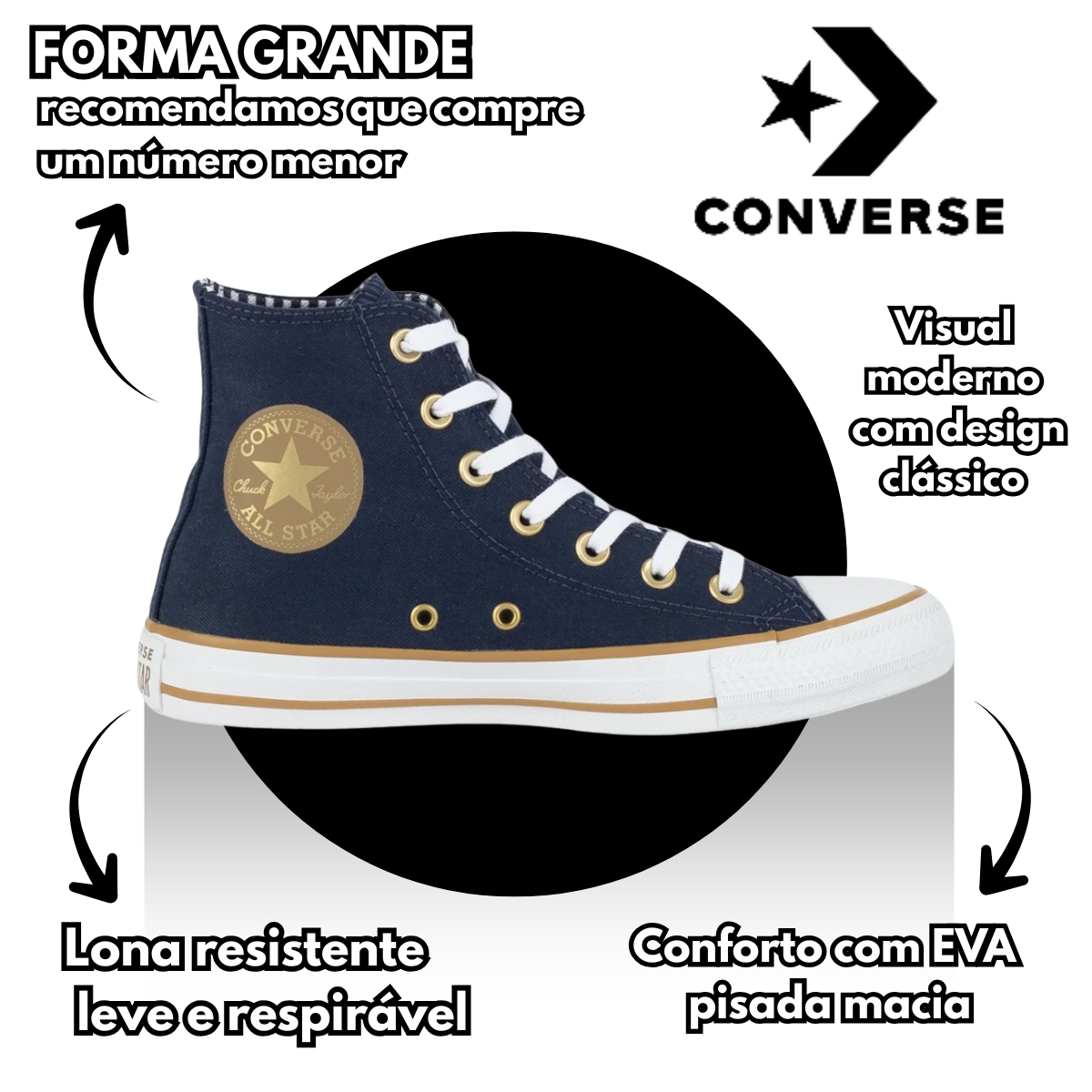 Em até 6x de R$ 56,67 sem juros À vistaR$ 271,99no PixO Tênis Converse Chuck Taylor All Star Cano Alto Marrom traz estilo clássico, conforto e versatilidade, com lona respirável e solado emborrachado ideal para o dia a dia.