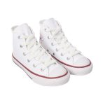 Confeccionado em lona de algodão resistente, o modelo oferece o visual clássico e atemporal que consagrou a Converse. O cano alto proporciona maior suporte ao tornozelo, enquanto os ilhoses laterais auxiliam na ventilação, mantendo os pés mais frescos durante o uso.