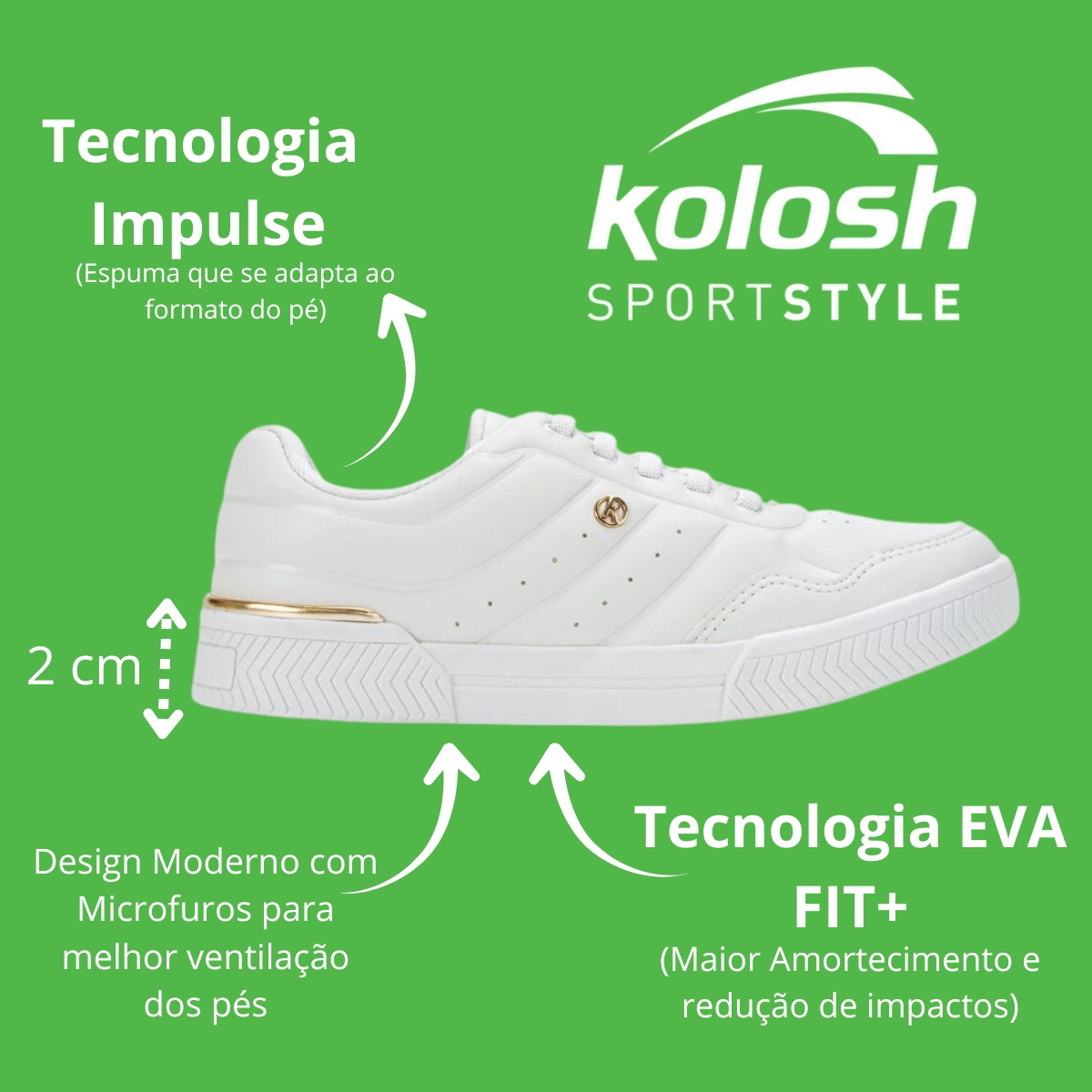 Tênis Kolosh Feminino Acolchoado Casual Confortável Calce Fácil C3013