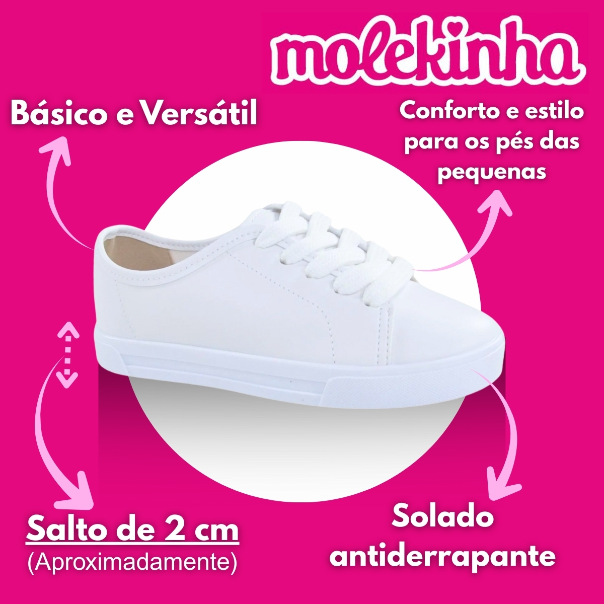 O Tênis Infantil Feminino Molekinha 2524449 foi desenvolvido para acompanhar a rotina das meninas com conforto, segurança e muito estilo. Com design delicado e moderno, o modelo combina facilmente com diferentes looks infantis, desde produções casuais com jeans até vestidos leves, sendo ideal para o uso diário.