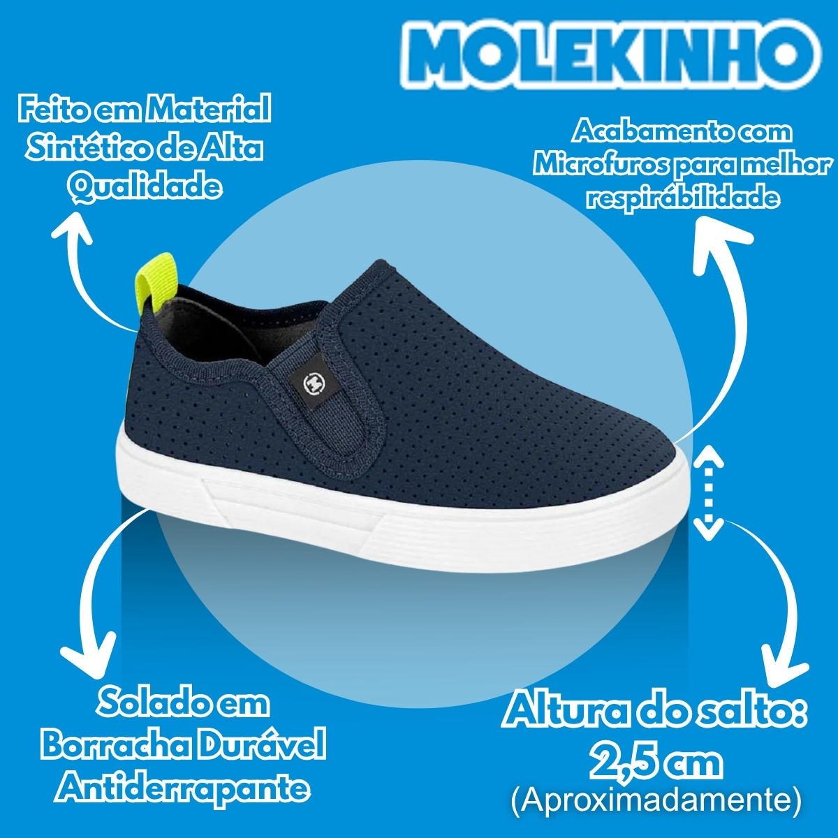 Itens inclusos na compra: Um Tênis Molekinho Infantil Masculino Slip On 2136161, enviados na embalagem original.