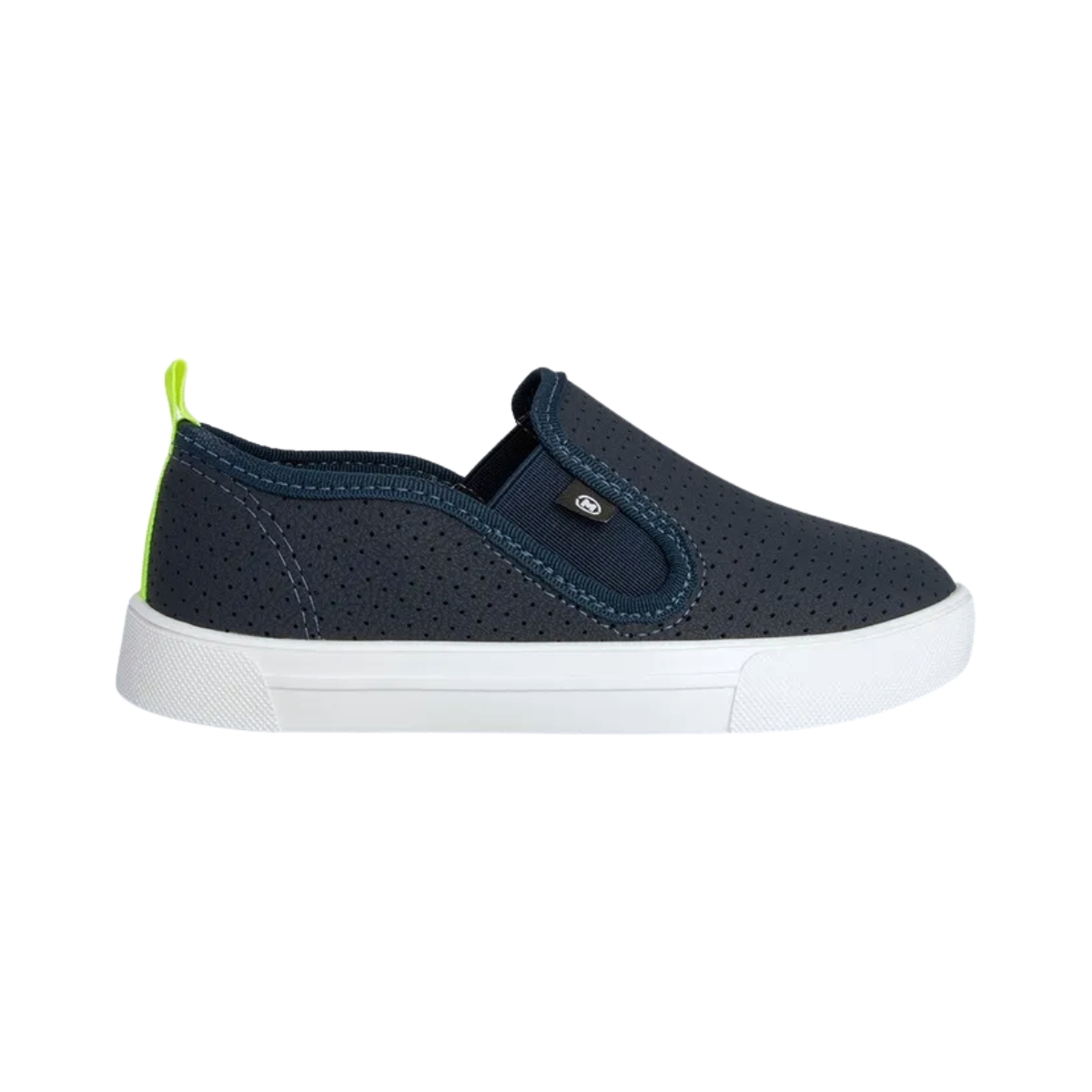 Seu design slip on, sem cadarço, conta com elástico lateral que facilita o calce, trazendo ainda mais autonomia para os pequenos na rotina escolar, passeios e momentos de lazer.