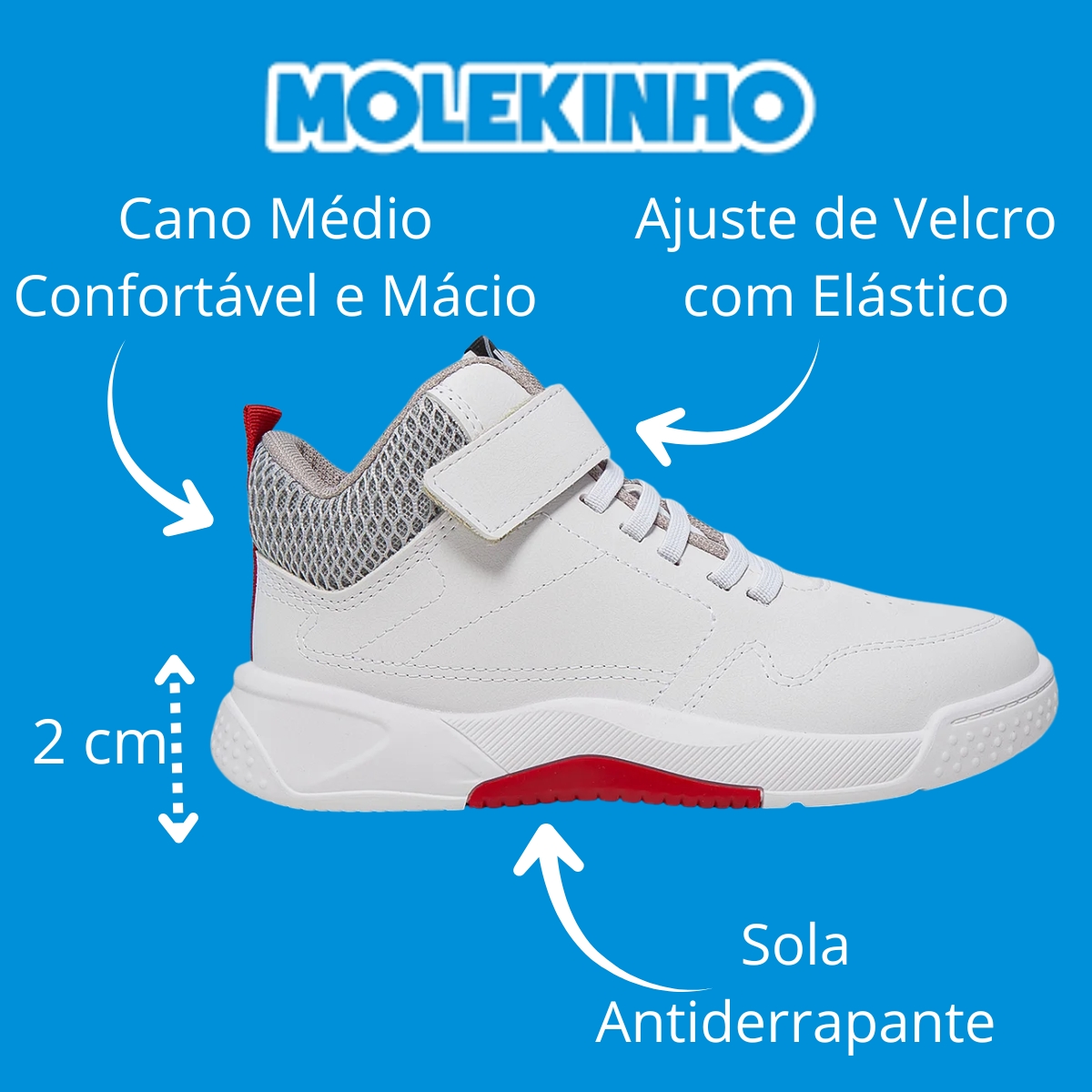 Itens inclusos na compra: Um Tênis Infantil Masculino Cano Médio Molekinho 2854.105, conforme anunciado, enviado na caixa original do fabricante.