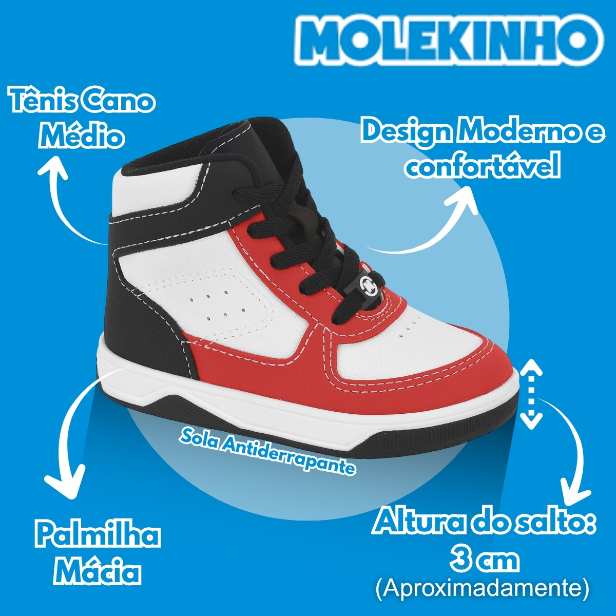 Itens inclusos na compra: Um par de Tênis Molekinho Casual Infantil Menino Cano Médio 2623112, enviado na caixa original do fabricante.