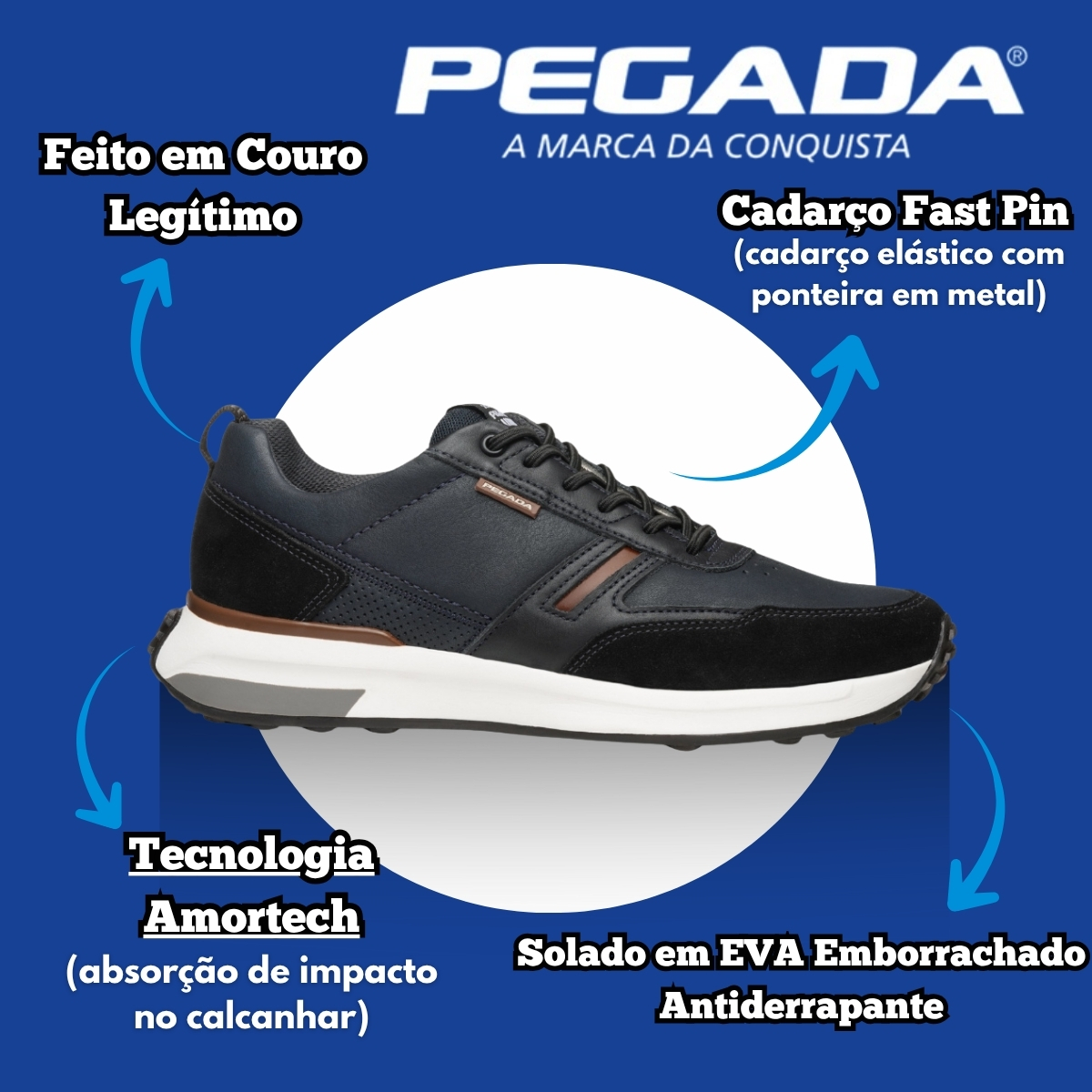 O Tênis Casual Pegada 110751 em couro legítimo une estilo urbano, conforto e praticidade para o dia a dia. Possui palmilha com tecnologia Amortech Blue Memory Foam, que se adapta aos pés e absorve impactos, além de solado leve em EVA emborrachado e sistema Fast Pin de calce fácil, garantindo ajuste rápido, estabilidade e bem-estar em cada passo.