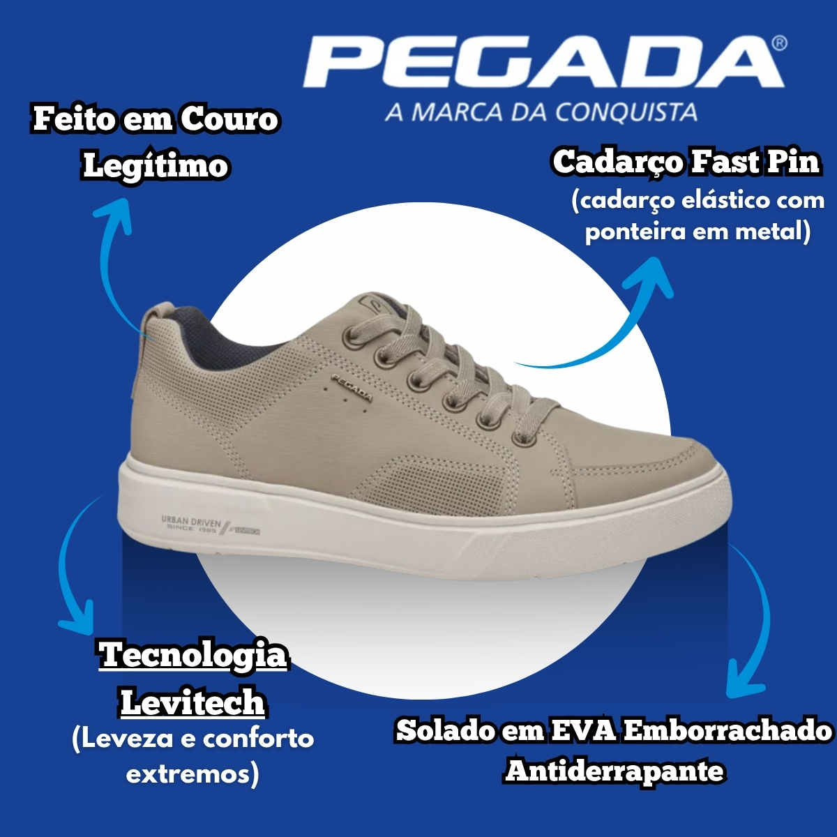 O Tênis Casual Pegada Flow em couro branco oferece a combinação perfeita entre estilo contemporâneo, leveza e conforto absoluto. Criado para quem busca liberdade de movimento e uma experiência superior a cada passo, o modelo traz a tecnologia Levitech, que garante um calçado extremamente leve e agradável de usar por longos períodos.