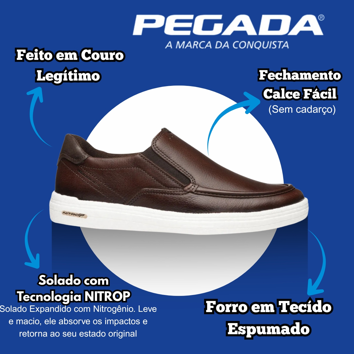 Pegada Drift Leveza, Tecnologia e Conforto em um Slip On de Couro Premium