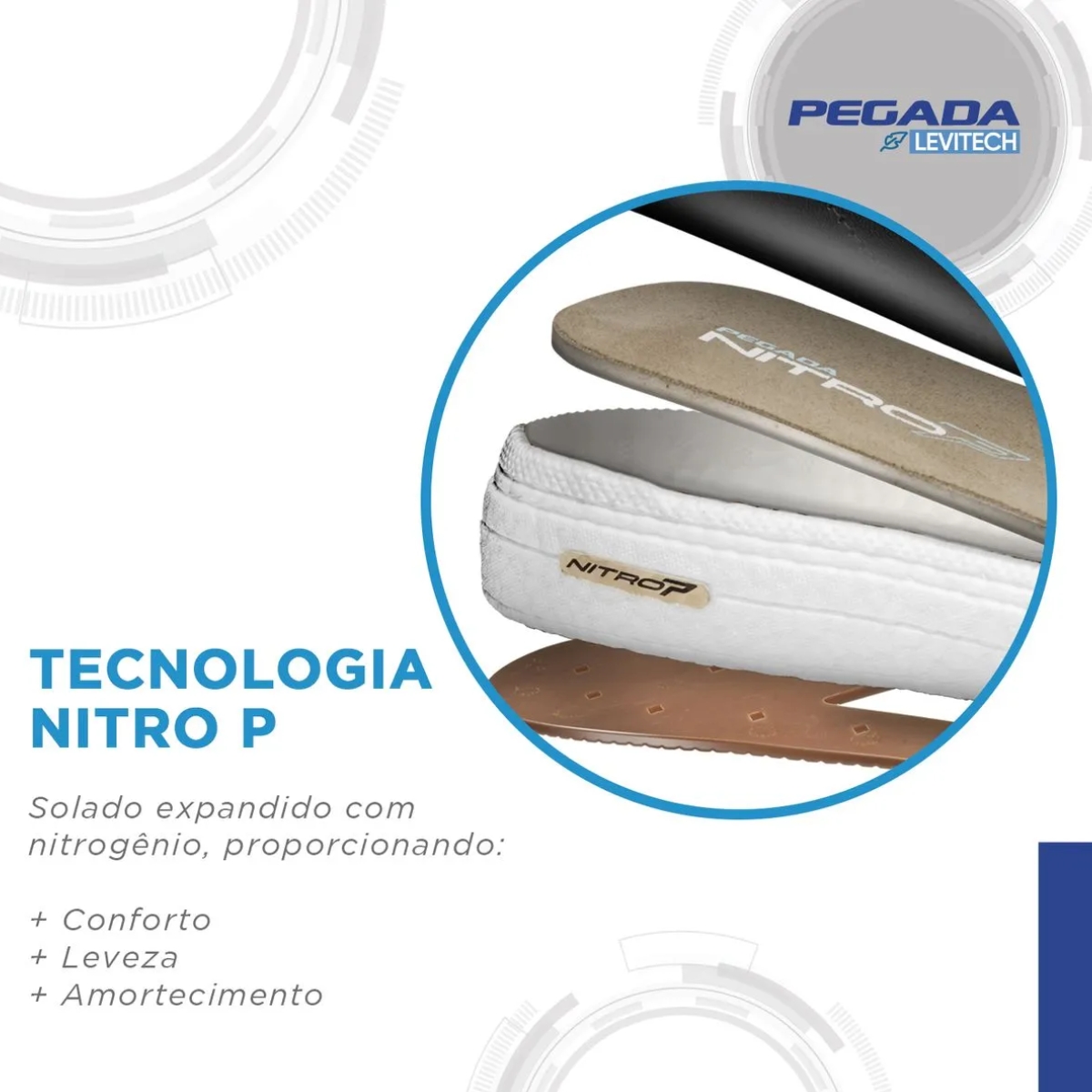 Solado: Tecnologia Nitro P (Nitro7), expandido com nitrogênio
